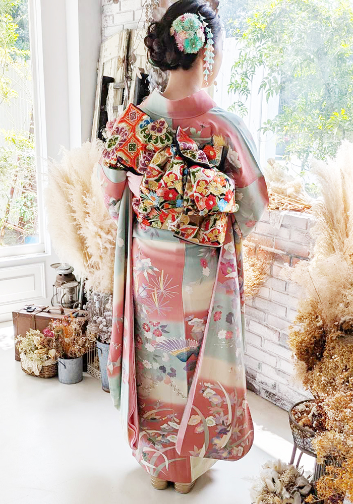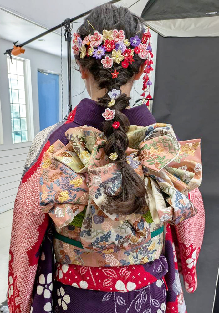 成人式の前撮りのため、振袖の着付けを行わせていただきました。