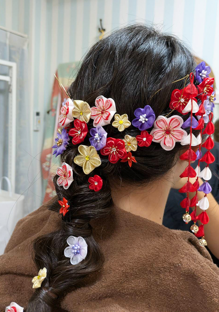 髪飾りの雰囲気に合わせて、髪型もチェンジしました。